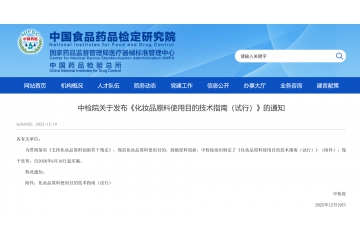 2025年12月19日,中国食品药品检定研究院(以下简称“中检院”)为贯彻落实《支持化妆品原料创新若干规定》,规范化妆品原料使用目的,鼓励原料创新,中检院组织发布《化妆品原料使用目的技术指南(试行)》(附件),现予,自2026年6月19日起实施。 目录:ht...